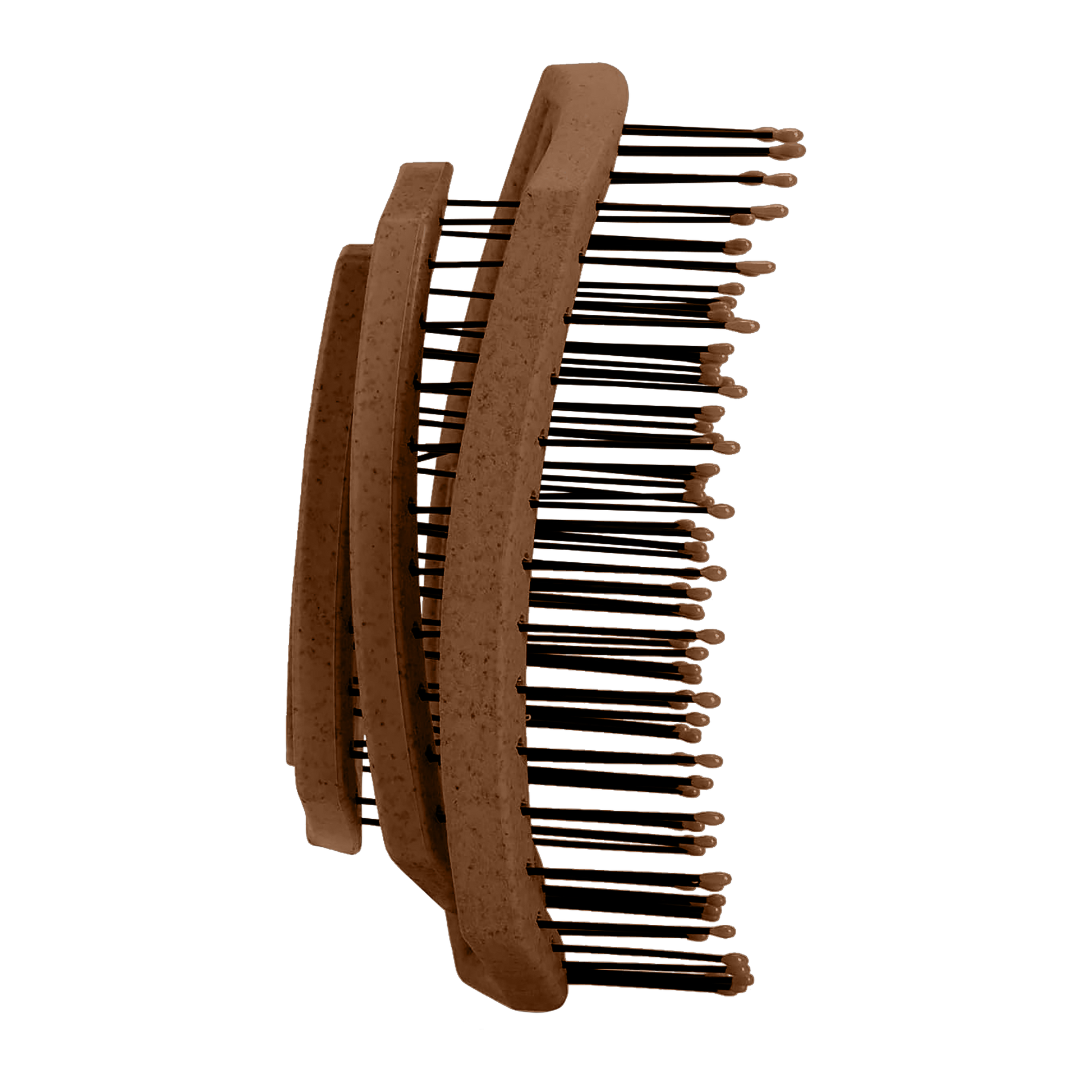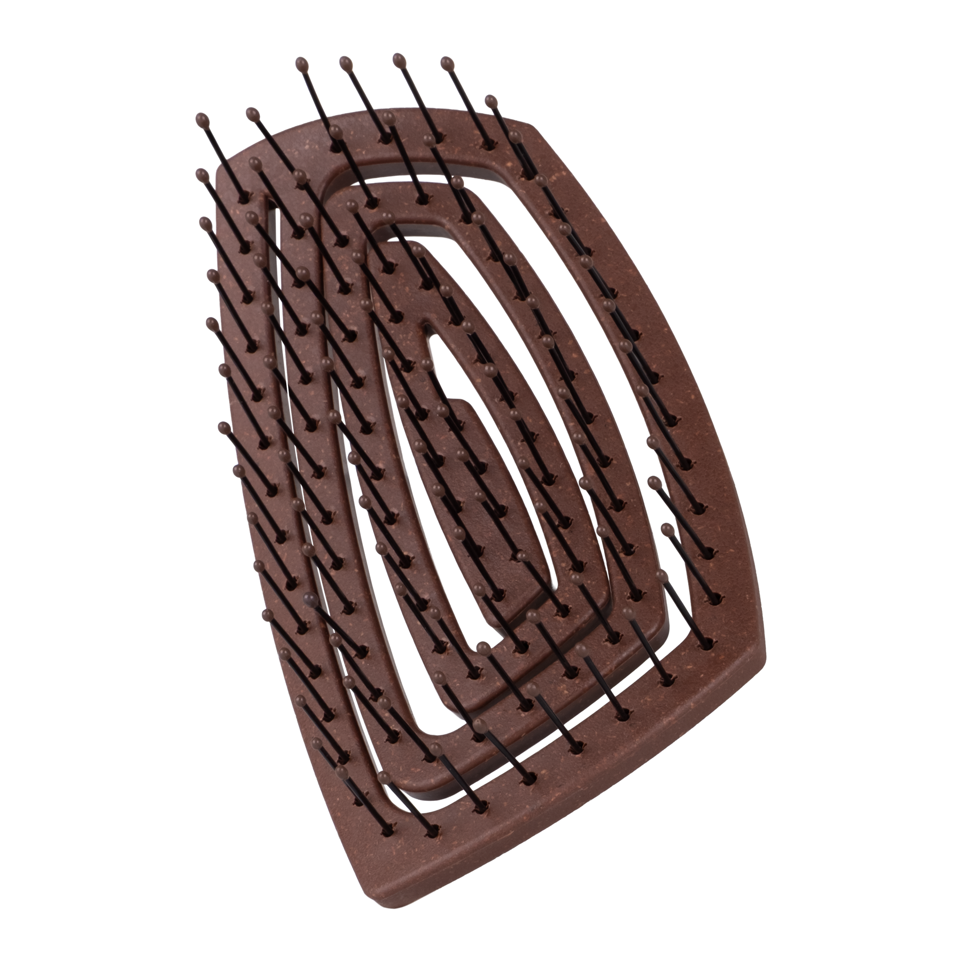 This flexi palm hair brush’s flexi-spiral design with anti-knot bristles fits the head’s contours and gently massage the scalp while teasing out any knots or tangles with minimal damage.