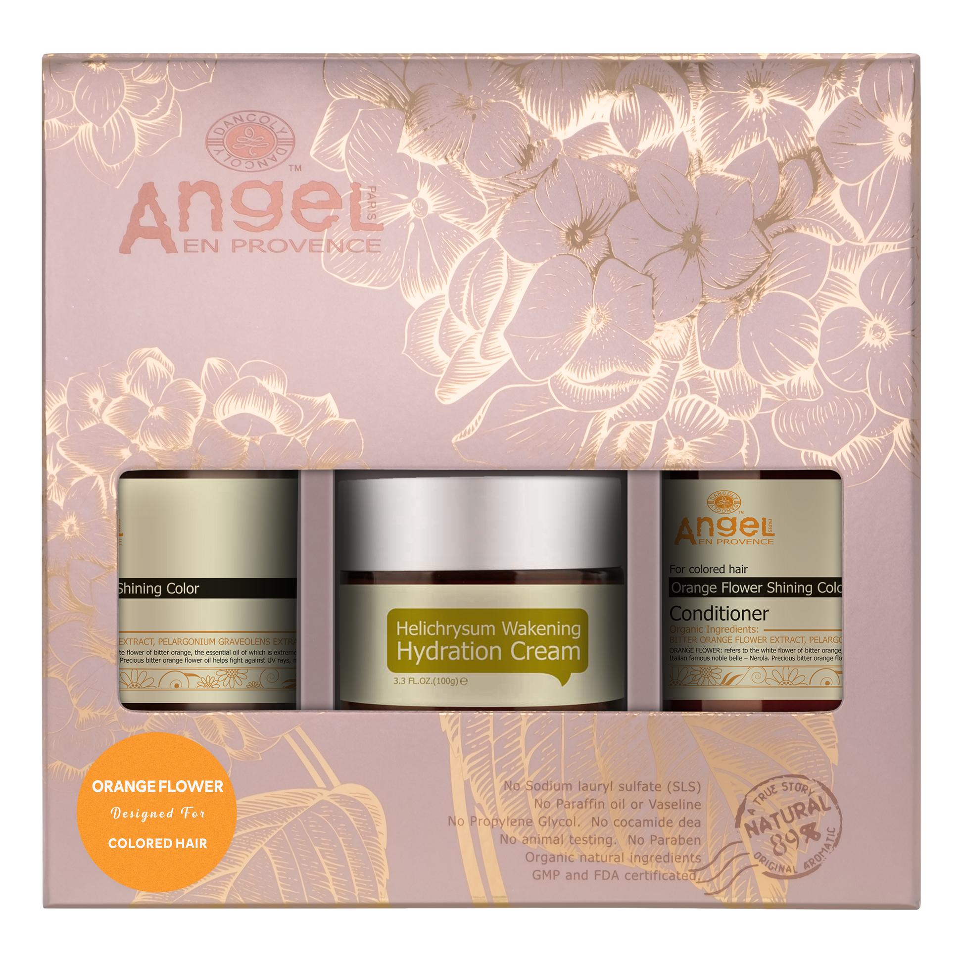 Angel En Provence Orange Flower Shining Colour Conditioner has a mild formula specially designed for coloured hair, adding natural ingredients with special protein factor to prevent fading, keeping colour treated hair at its peak. Protects hair against environmental damage, leaving hair soft and vibrant with a lustrous shine. Formulated with Bitter Orange Extract, Pelarganium Graveolens Extract and Rose Extract to protect colour from UV damage. Orange Flower prevents colour fading due to a high content of Anti Oxidants that fight free radical damage while improving condition, hydrating and smoothing the hair preventing frizz and split ends occurring. Leaves the hair soft, smooth, shiny and vibrant. Suitable for all hair types especially medium to coarse texture.