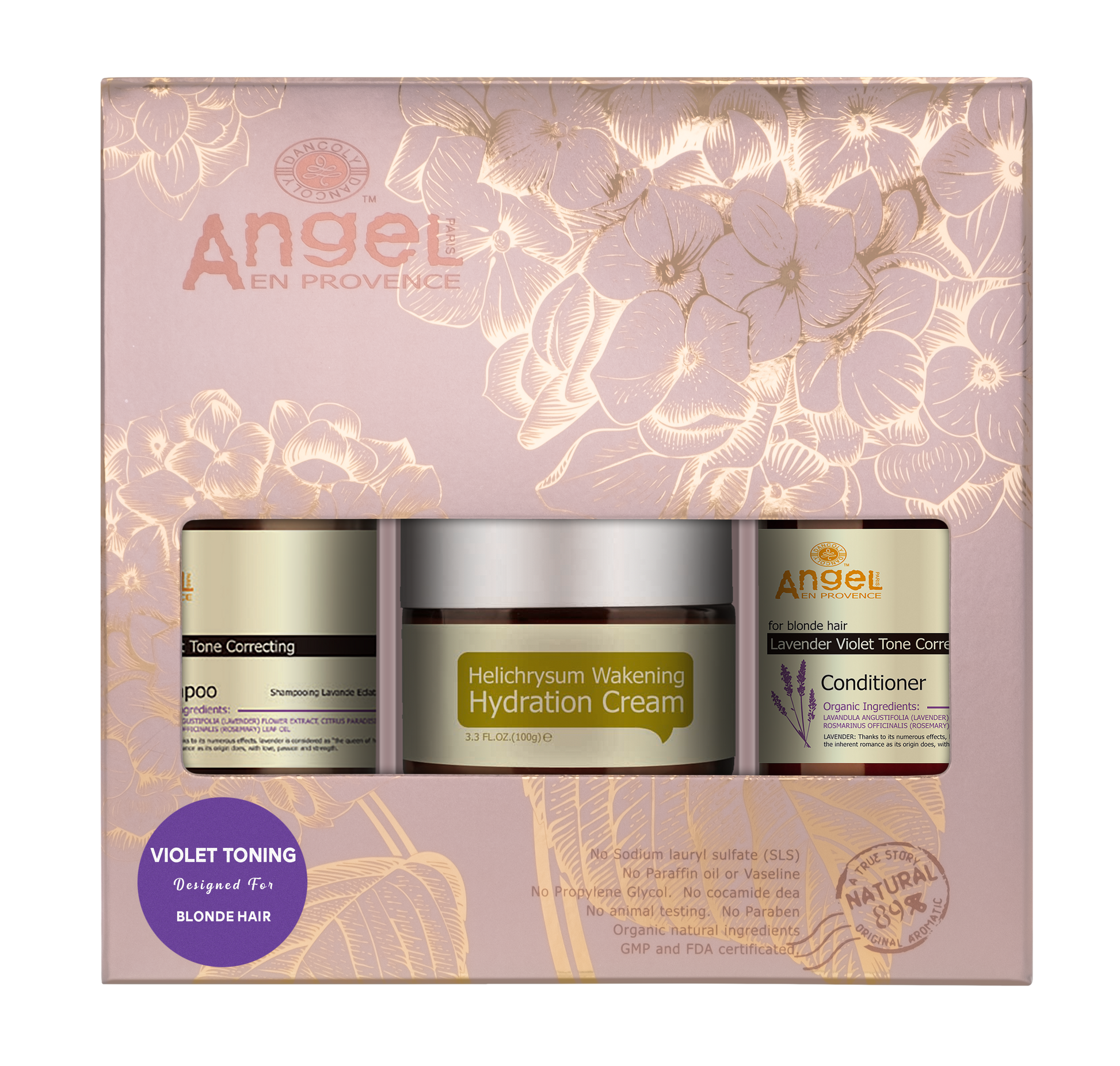 Angel En Provence Lavender Violet Tone Correcting Conditioner helps remove unwanted yellow and brassy tones from blonde hair.